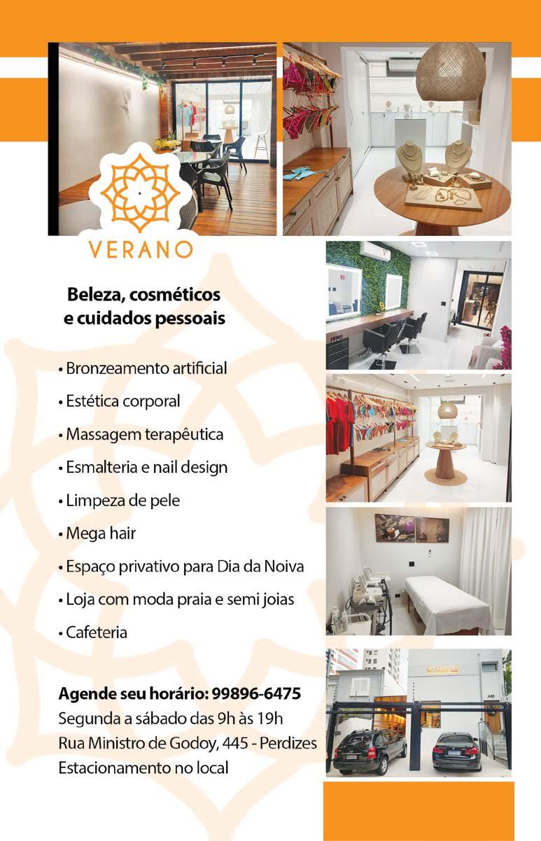 Aline se orgulha da clientela conquistada nestes anos de atividade. Entre elas, cita a blogueira Nah Cardoso, a atriz e influenciadora Rafa Kalimann. Os serviços da Verano podem ser uma opção de presente para datas especiais como o Dia das Mães e Dia dos Namorados. É indicado agendar o atendimento para conforto da clientela. Abre de segunda a sábado. Tem estacionamento. (GA)