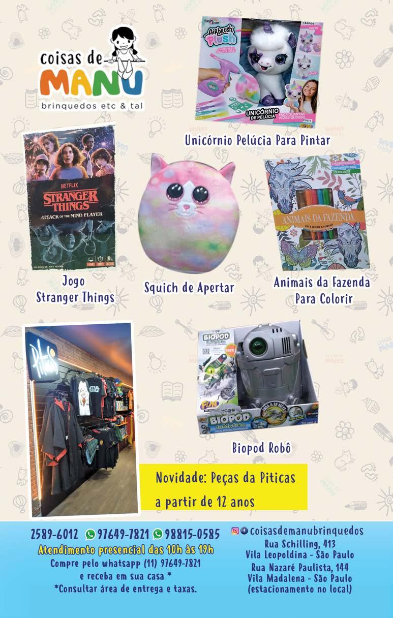 Coisas de Manu Brinquedos Av. Nazaré Paulista, 144 Telefone 97649-7821 facebook.com/coisasdemanubrinquedoswww.coisasdemanu.com.br(Whats)
