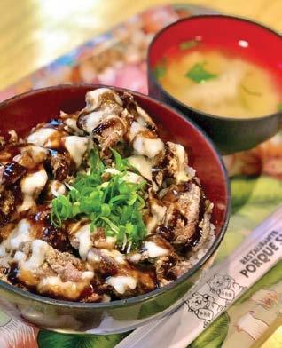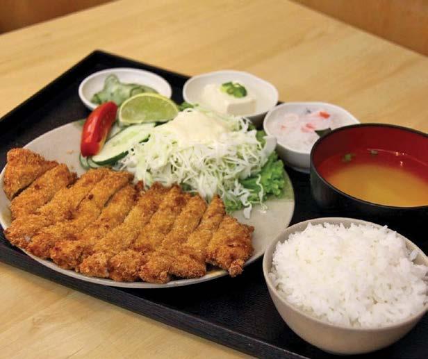 ína (Gyukatsu ou tonkatsu) ou camarões (ebifurai) ou frango (Karaague). o karê é um cozido com pedaços de carne bovina e legumes como cebola e cenoura e servido com arroz, salada, fukujinzukê (tipo de conserva) e missoshiru, a deliciosa sopa de pasta de soja com tofu e cebolinha.