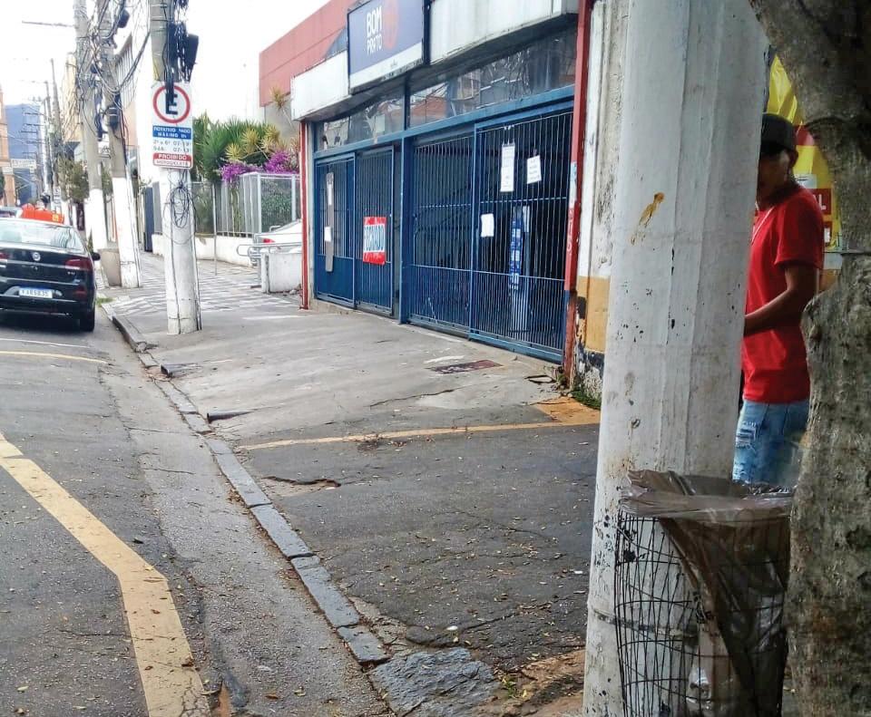 da sujeira em frente à unidade do Bom Prato existente no local. Guias e calçadas foram varridas e o lixo acumulado retirado das lixeiras que ficam penduradas nos postes da via.