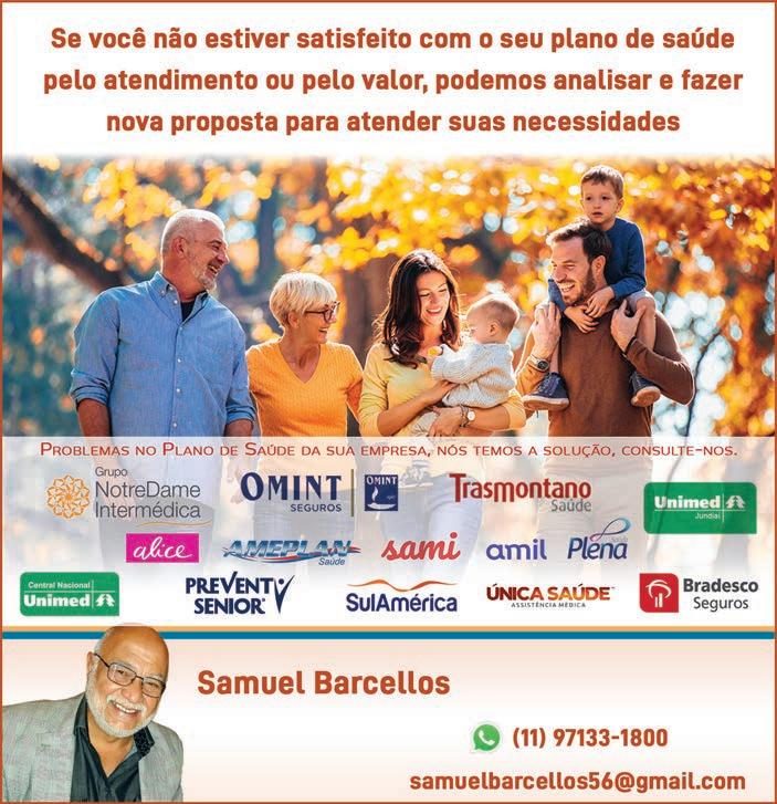 IMÓVEIS JG Para anunciar ligue: lAPA/lEOPOlDINA 97548-7635 | lAPA/ROMANA 97133-1803 Plantão aos sábados das 9h às 16h “Não importa o tamanho do seu sonho, se for alto o corretor de imóveis lhe vende a cobertura” Rua Bairi, 29 - Alto da Lapa www.lucianaimoveis.com.br CRECI 12.974-J 3641- 3966 • 97261-1213 99657-0765 A FORÇA DE UM NOME