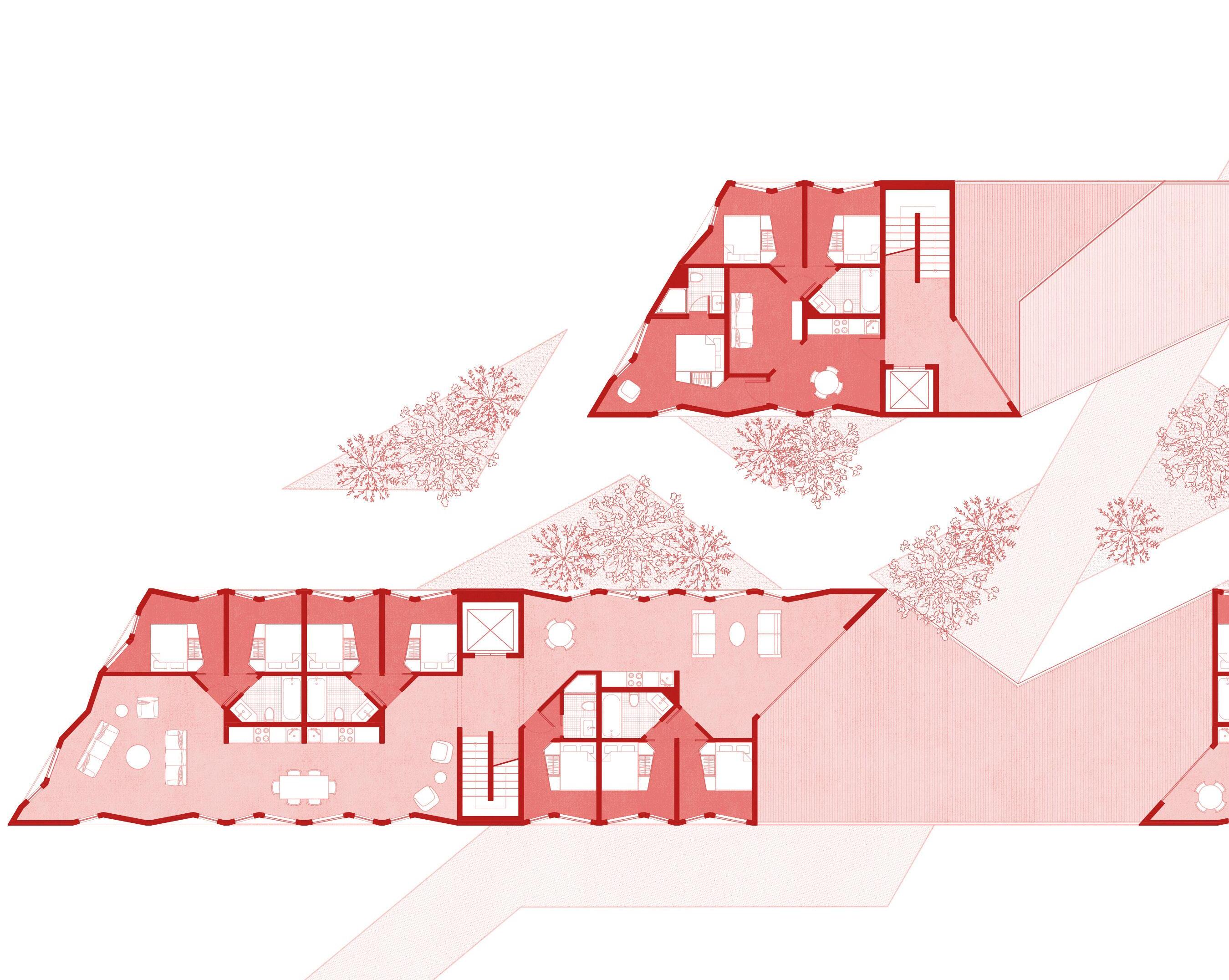A social housing development utilizing urban strategies across scales to improve the living conditions for new and existing residents.