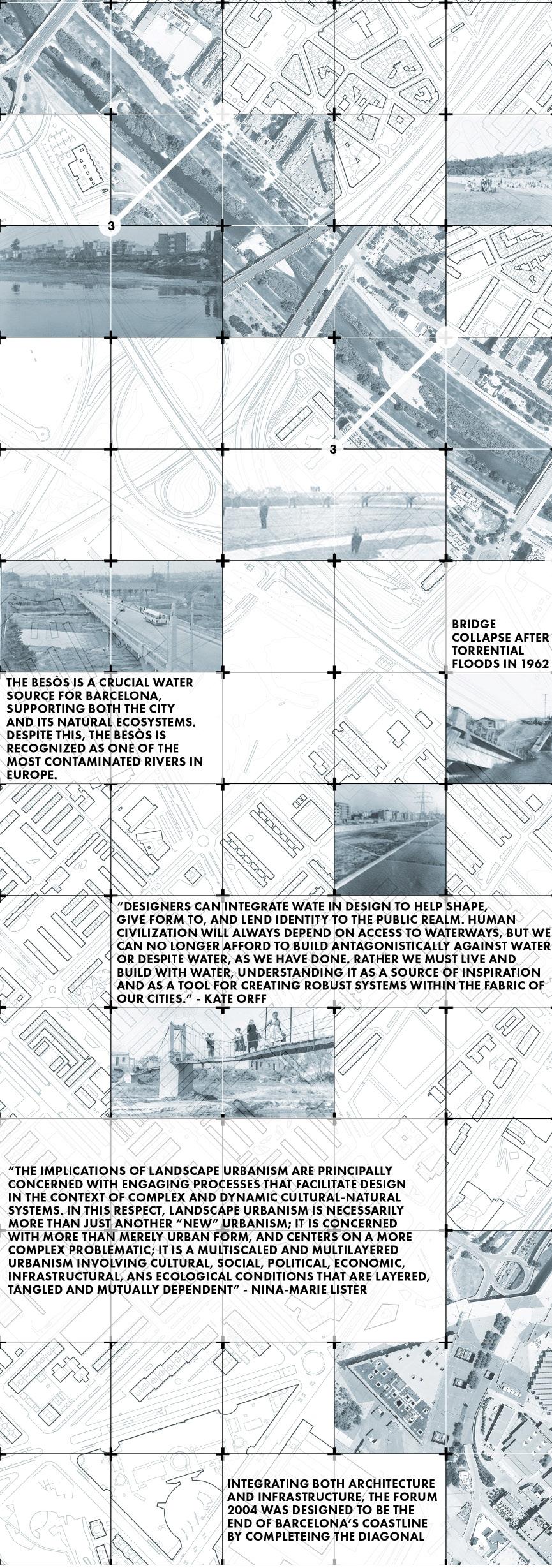This thesis analyzes the historical development of cities and how their relationship with rivers has changed over time: from being critical to a city’s development to being neglected. Due to this neglect, rivers have become a source of disintegration and fragmentation to their surrounding communities. The challenge of this thesis is to design a project that doesn’t only establish a dialogue with the surrounding context, but also the environmental systems that exist there. Therefore, it extends the typical urban scale to include the innate ecological systems that exist on the site. To address the issues facing the communities along the Besòs River Corridor, this thesis proposes an ecological museum that redefines the city’s relationship to the river to improve the social and ecological health of the region and strengthen the connection between the river, people, and the city. Emphasizing urban regeneration, this project won’t just restore the contaminated postindustrial landscape, but will also foster a new sense of direction for the city by addressing economic, environmental, cultural, and social components.