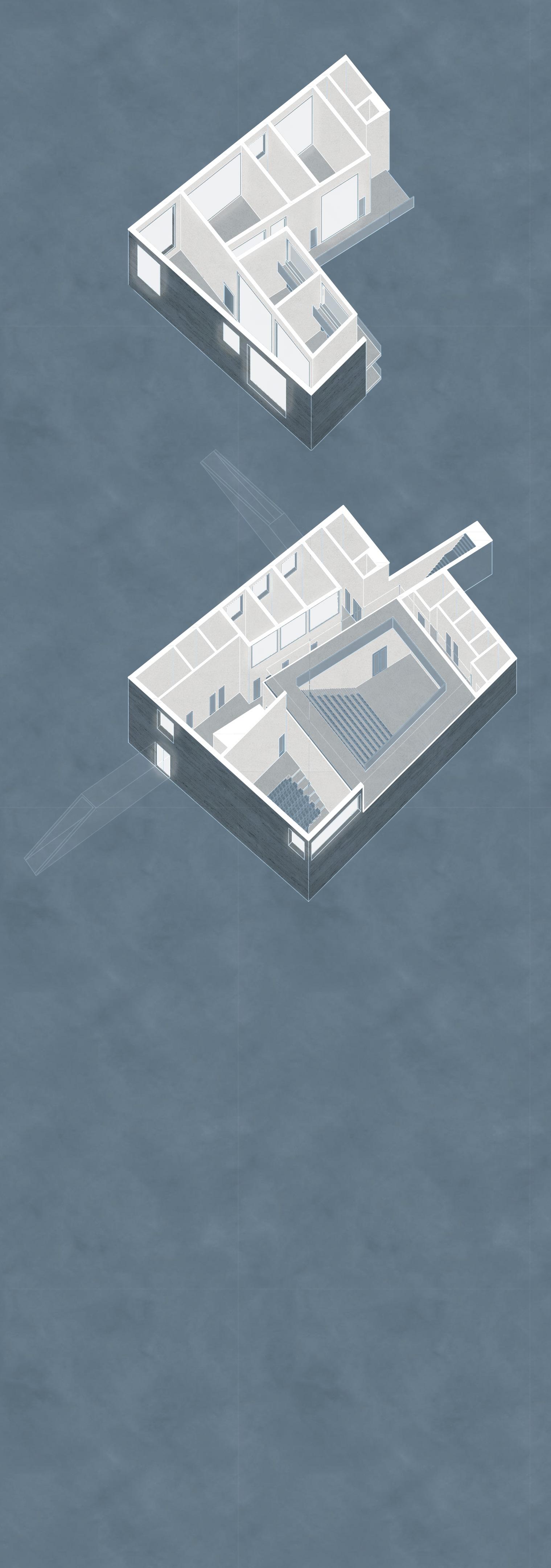 The theater is conceived as two buildings connected by a central theater: one for performing arts and the other for civic functions. Although physically separate, these two buildings remain visually connected through the light-filled atrium above the theater. This atrium ensures that performances are visible from all floors on both sides of the building.