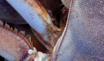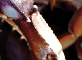 the ocean oor. I’d been out in the skiff when the pots were brought up and was absolutely abbergasted at the sight of those creatures, so big (they can attain up to ve feet or more from the tip of one leg to the other) and intimidating with their thorned shells.