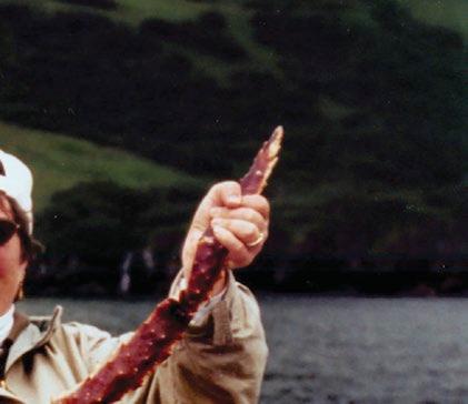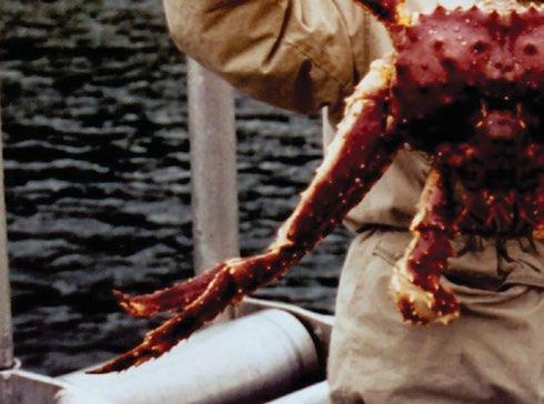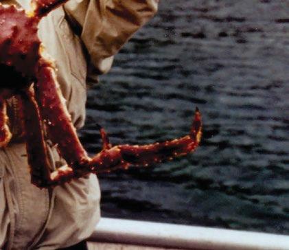 These deep-sea creatures thrive in the frigid waters of the North Paci c, and treacherous ocean conditions there have helped make king crab shing among the most dangerous professions in the world. Back in the mid-1960s, Kodiak Island was Alaska’s largest producer of king crab, landing nearly ninety-one million pounds in 1966. But stocks in those waters declined signi cantly in the couple decades since peak harvests of Alaska king crab were recorded in the 1980s. Today there is no commercial king crabbing on Kodiak (it’s primarily out in the Bering Sea now), but limited subsistence crabbing allowed on the island maintains the tradition.