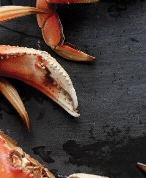 When captain george vancouver explored the Strait of Juan de Fuca at the north edge of Washington State’s Olympic Peninsula in the late eighteenth century, he happened upon a stretch of land that reminded him of a point on the English Channel called Dungeness. When he gave this Washington spit the same name, Vancouver inadvertently established the namesake for what would become one of the Northwest’s most iconic foods. The beautiful Dungeness crab was at rst known simply as “edible crab” or just “crab.” But as the shery for this delectable, sweet crab became more signi cant in the early twentieth century, it took on the name “Dungeness.”