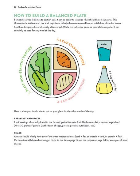 After working with hundreds of clients, the five-step method that follows is what I have found to be the easiest approach to meal planning. It’s easy to start, and it’s easy to maintain. This isn’t about following strict rules because let’s be honest: When has following some super-specific eating regimen ever worked for you in the past? The goal here is to eat in a way that is incredibly realistic, flexible, and manageable.