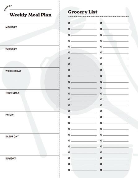 The steps laid out on the following pages are my go-to process for meal-planning success. Use them to help you get into the swing of things, then as you get more comfortable, feel free to combine steps, or skip ones that you feel are no longer necessary for you.