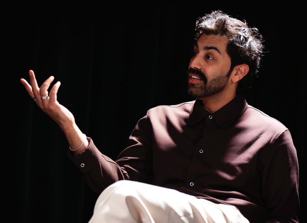 Audiences emerge from the greenhouse, opening the door to reveal a stage planted in the garden’s center. Kaya Dublin, CEO of FBN, wears a scarlet dress with a rose blooming from the fabric on her shoulder, and co-founder Cassandra Rodriguez dons Daughter of Venus, Catherine Elizabeth’s clothing line.