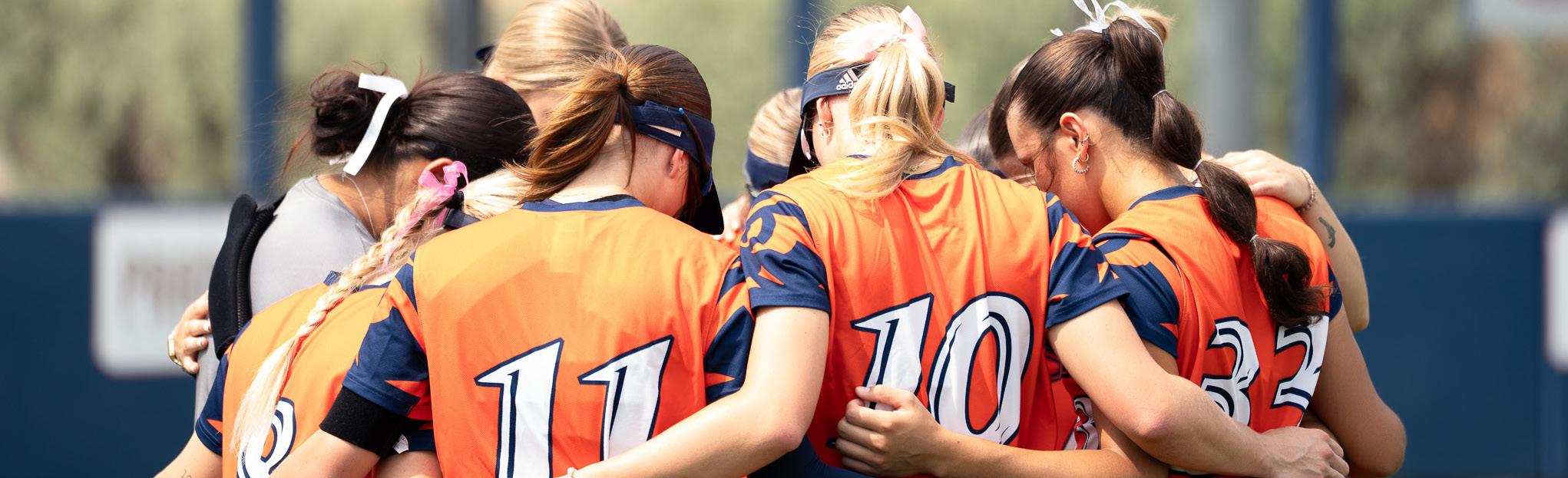 UTSA softball huddles prior to the team’s opening game conference matchup against