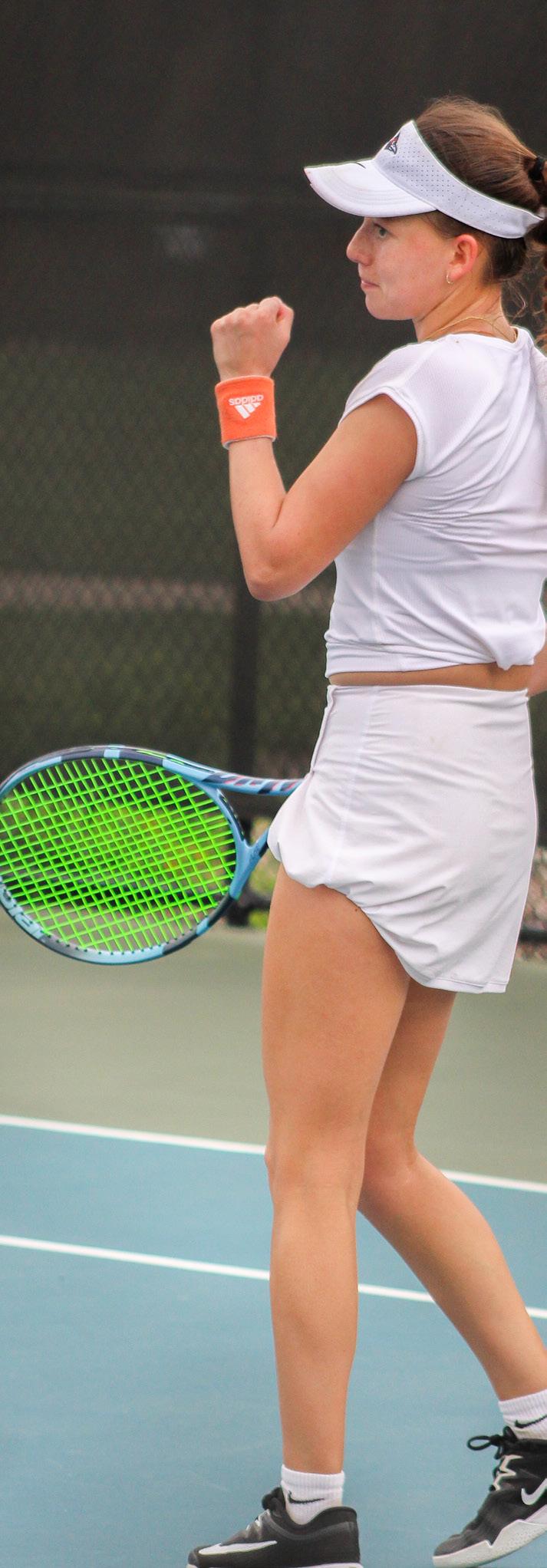 The ‘Runners (9-10) trounced the Cardinals (9-11) in near-perfect fashion. Singles play started strong for UTSA, with the frst four points earned in succession. The Roadrunners faltered in the ffth match, as Lamar scored its lone point, but UTSA recovered in its fnal singles match, earning fve points to Lamar’s one. Due to the damp weather and a dominant performance from UTSA, the doubles matches were cancelled.