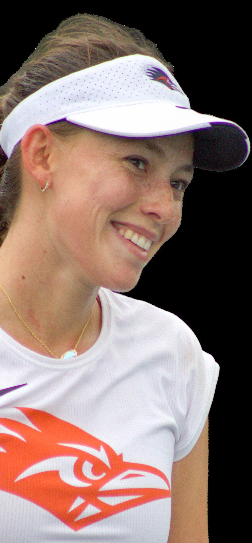 Freshman Laia Tarazona Peyro put the Roadrunners’ frst point on the scoreboard. The Spain native defeated Lamar’s Eva Gumenyuk, 6-1, 6-1. Junior Akari Tomoyose fnished soon after with a shutout set and a 6-2 win against Martina Alcaino, securing the second point of the match. Freshman Celine Absawi’s skill set far outshone the Cardinals’ Arina