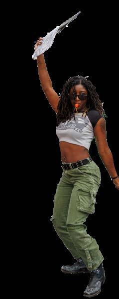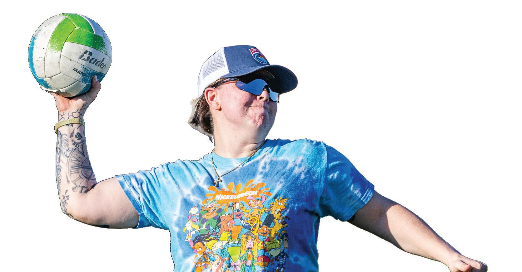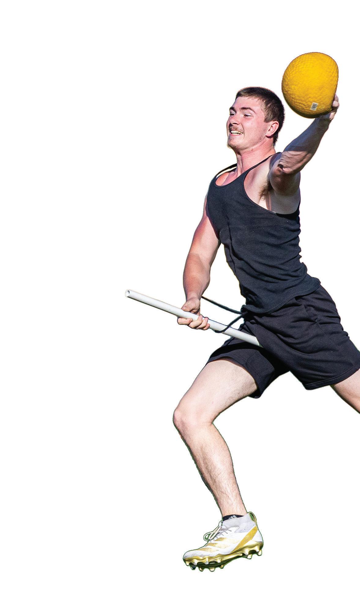 As the team walked onto the feld, players began running drills to brush up on their skills. Junior public health major Paulina Dominguez explained the players’ positions to The Paisano. The Chasers whizz around the feld to score points for the team, throwing the quaffe through three elevated hoops lined up on each end of the feld. The Beaters’ main goal is to act as defense and to open up opportunities to score points. Pushing back against the chasers, Beaters use their blunt force to throw the bludgers. All players straddle a pole during gameplay, calling to mind images of wizards upon their fying broomsticks.
