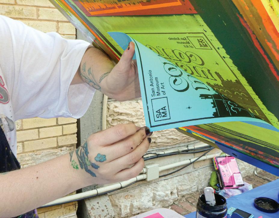Students designed buttons, made colorful prints and took part in themed tours around the museum. Attendees could even use a print machine to make a commemorative poster with the slogan “College Night at SAMA!” After collecting a souvenir print commemorating the night, attendees could design their own button-shaped pin at the next door over.