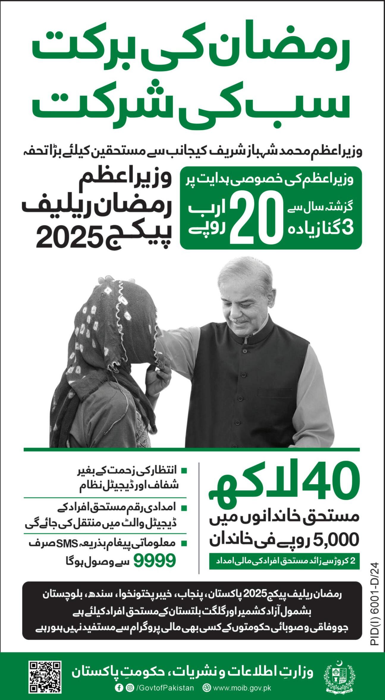 FO R years, the government has offered relief to consumers by offering certain goods, such as gram flour, edible oil and sugar at subsidized rates through the Utility Stores all over the country This yer, the government is giving cash directly to the needy, through the Benazir Income Support Programme network, which is monitored through ID cards While announcing this scheme on Saturday night, on the eve of the first fast of Ramazan, Prime Minister Shehbaz Sharif disclosed that the government was actually allocating much more money this year than in previous years Rs 20 billion instead of Rs 7 billion The scheme involves giving Rs 5000 per family to four million families and the great argument adduced is that the subsidy is targeted, and will go to those who need the subsidy the most