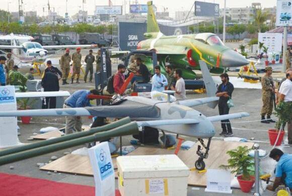 Pakistani officials prepare a locallymanufactured GIDS Shahpar unmanned aerial vehicle for display as a PAC JF-17 Thunder multirole combat aircraft jointly developed by China and Pakistan, is seen in background at right during preparations for the International Defence Exhibition and seminar (IDEAS) in Karachi on November 29 2014 Some 333 exhibitors including 77 Pakistani firms will be exhibiting their products during the defence exhibition AFP PHOTO/Rizwan TABASSUM The Economic Coordination Committee (ECC) of the Cabinet has approved amendments to the Import Policy Order (IPO) 2022 permitting the import and subsequent re-export of defense-related vehicles, helicopters, and assemblies by State-owned defense entities and their wholly-owned com-