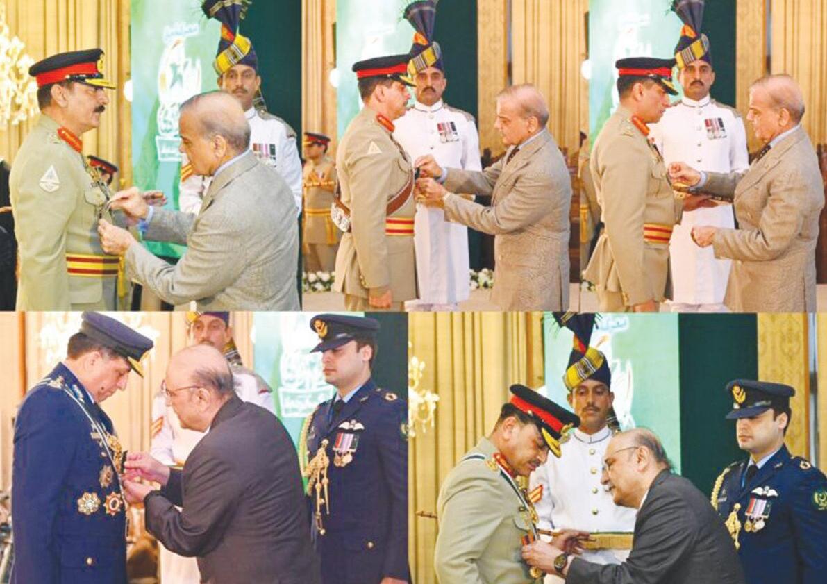 ing applause for their sacrifice President conferred Hilal-i-Juraat on Chief of Army Staff (COAS), Field Marshal Syed Asim Munir, Chief of Air Staff, Air Chief Marshal Zaheer Ahmad Babar Sindhu Nishan-i-Imtiaz on Deputy Prime Minister/Foreign Minister Ishaq Dar Federal Minister for Law & Justice Azam Nazeer Tarar, Federal Minister for Defence Khawaja Muhammad Asif, Federal Minister for