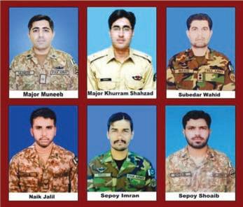 Khurram Shahzad, Major Muhammad Muneeb Afzal, Subidar Abdul Wahid, Sepoy Muhammad Imran, Naik Jalil, and Sepoy Shoaib.
