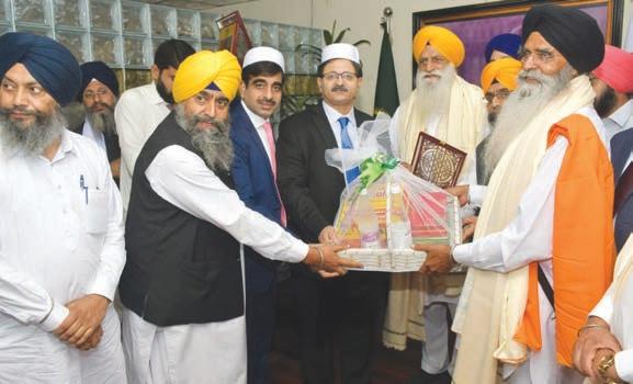 LAHoRe: Evacuee Trust Property Board Chairman Habibur Rehman Gillani presents gift to Pardhan from Delhi Harjinder Singh Dhami upon arrival. PHoto by ZubAiR MeHfooZPHoto by ZubAiR MeHfooZ