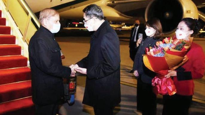 Primeminister Shehbaz Sharif on tuesday landed in Chinese capital on his first state visit to the friendly nation after assuming office in april, where he will meet Chinese President Xi jin-