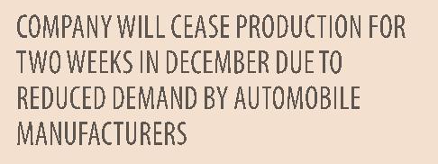 pr ofit report Da n i ya l a h m a D CO M PA N Y W I L L C E A S E P R O D U C T I O N F O R T W O W E E K S I N D E C E M B E R D U E TO R E D U C E D D E M A N D B Y AU TO M O B I L E M A N U FAC T U R E R S