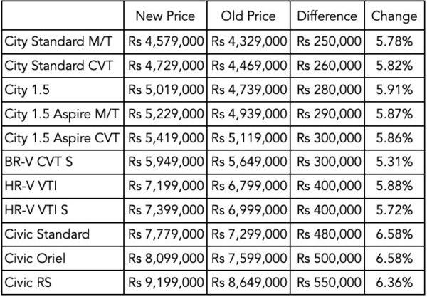 Honda updated the prices for its entire four-wheel portfolio on February 17 The new prices are as follows: