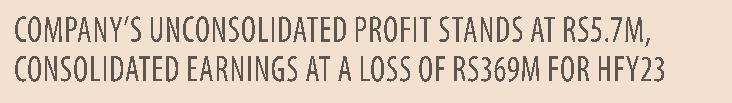 COMPANY’S UNCONSOLIDATED PROFIT STANDS AT RS5.7M, CONSOLIDATED EARNINGS AT A LOSS OF RS369M FOR HFY23