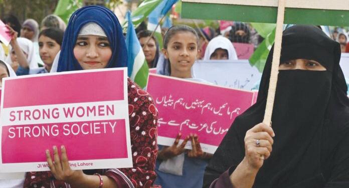He said that the women take to the streets to h ghlight two separate narratives SECTIoN 144 IN L AHoRE: While speaking about the ban on public gatherings imposed in Lahore Sanau lah said that the government imposed Section 144 in light of secur ty reports by the agencies