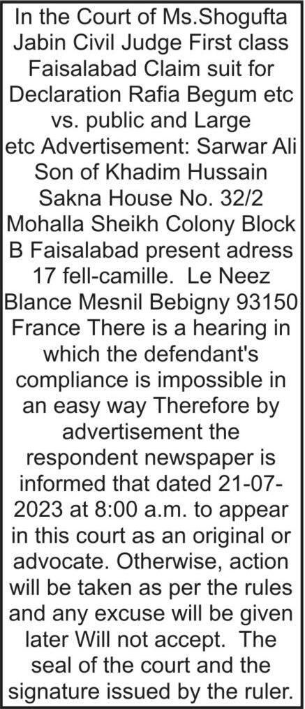 Prayer timingS FA J R S U N R I S E Z U H R A S R M AG H R I B S H A 4:35 5:10 1 30 5:30 7:10 9:00 Thursday 20 July 2023 NEWS Published by Asad Nizami at Qandeel Printing Press, 4 Queens Road, Lahore, for PT Print (Pvt) Limited Ph: 042-36300938, 042-36375965 Email: newsroom@pakistantoday com pk
