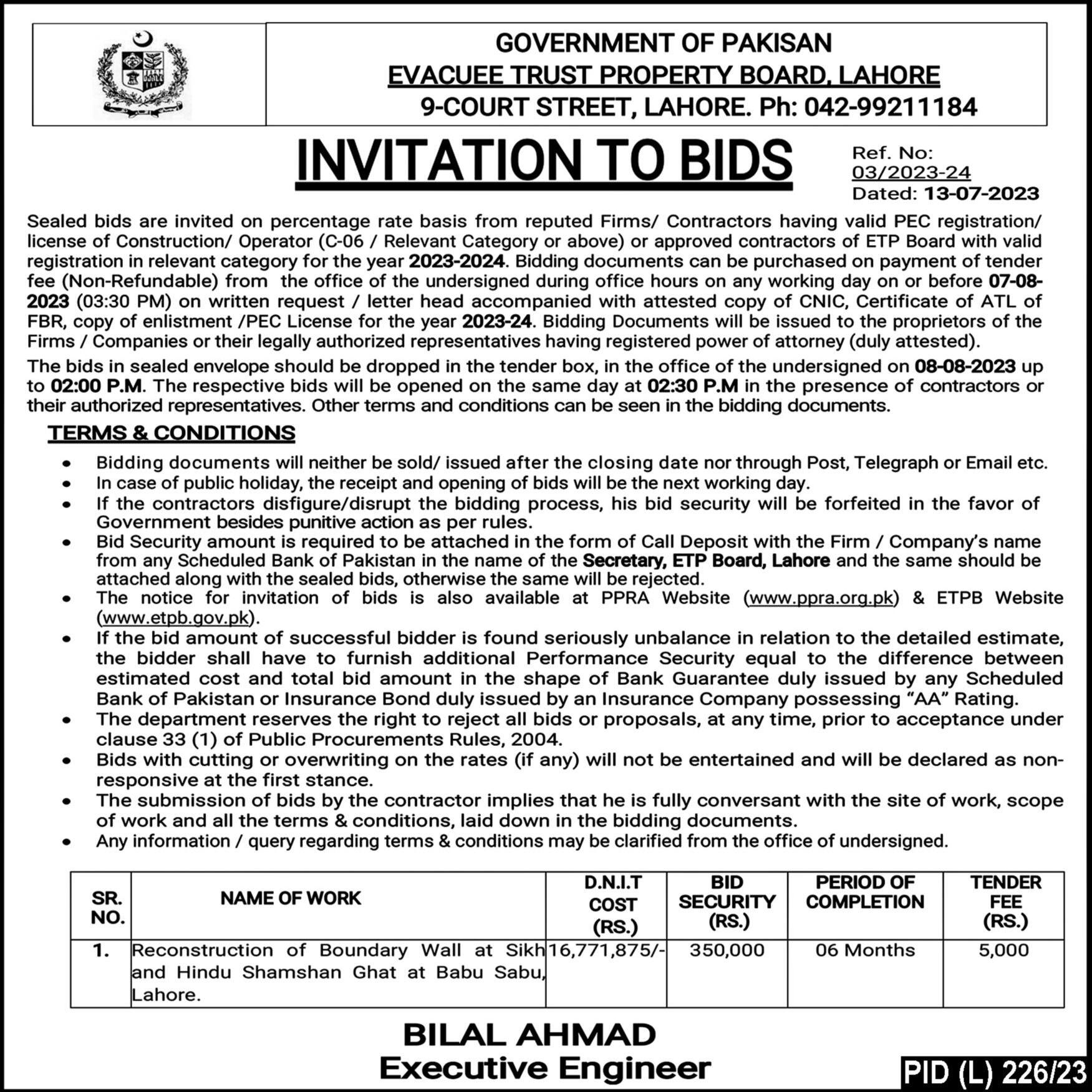 ECNEC considered and approved a project of Govt of Punjab titled “Lahore Ring Road-Southern Loop (SL-3) Construction of Road from Raiwind Road upto Multan Road at the total cost of Rs 17 785 850 million without FEC The project is to be executed in the District Lahore of Punjab Province by C&W Dept Govt of Punjab and is to be entirely financed by the Government of Punjab ADP The ECNEC also considered and approved a summary of Ministry of National Food Security & Research regarding project titled Prime Minister s National Programme for Solarization Agriculture Tube Wells Punjab, Sindh, KPK, and Balochistan” and allowed inclusion of existing pumping systems on small dams ponds and river/stream/nullah ponds serving the same purpose as tube-wells A p r o j e c t o f t h e M i n i s t r y o f C o mm u n i c a t i o n s w a s a l s o c o n s i d e r e d a n d