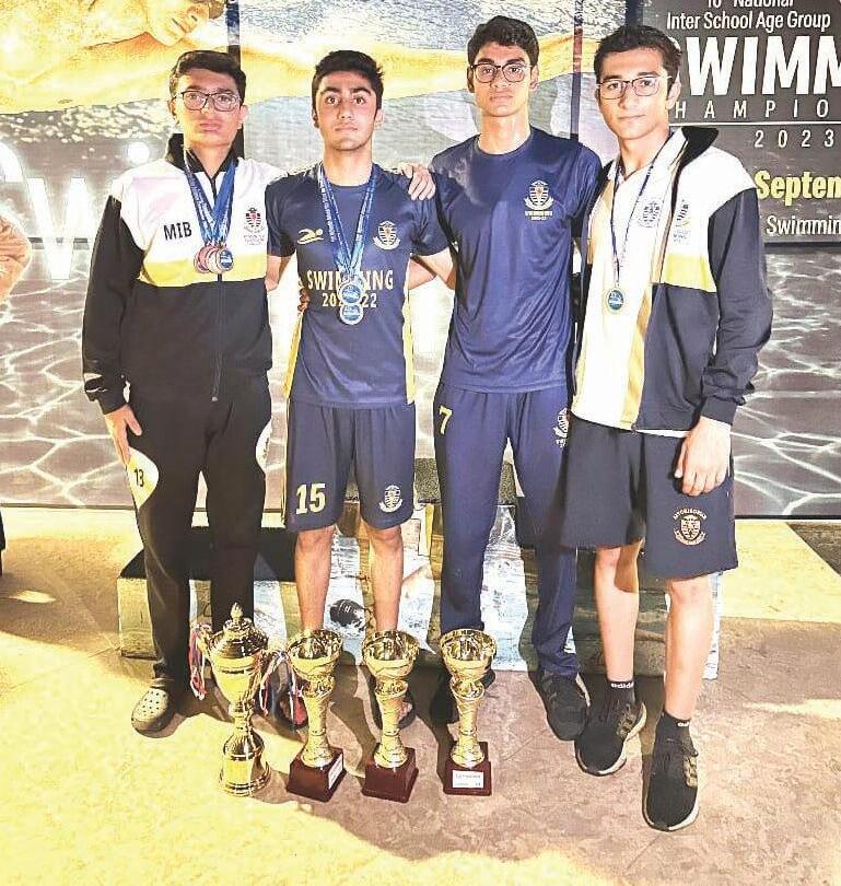 L a h o r e (L-r): Ibrahim, Mikail, Danyal & Hamza amongst the Aitchison winners Danyal & Rayaan were the top Medal grossers in Super boys Mohid & Ibrahim dominated the under 16 age group However, Rayan & Mohtishm were the top swimmers in under 12 categories Team Aitchison won 16th McDonalds National Inter-School Swimming Championship PR