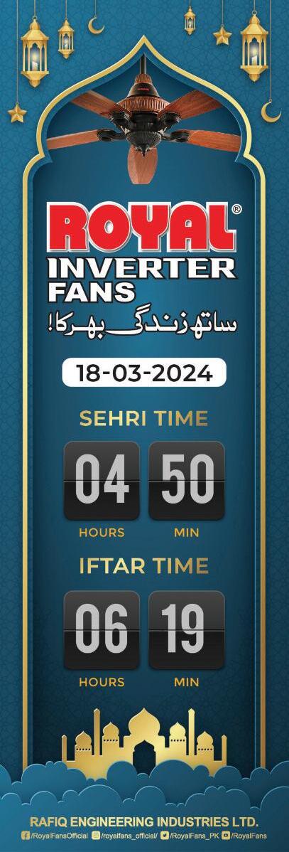 prayer tiMinGs FA J R S U N R S E Z U H R A S R MAG H R I B I S H A 5 : 1 5 6 : 1 2 1 : 3 0 5 : 0 0 6 : 2 5 8 : 0 0 Monday 18 March 2024 NEWS Published by Asad Nizami at Qandeel Printing Press, 4 Queens Road, Lahore, for PT Print (Pvt) Limited Ph: 042-36300938, 042-36375965 Email: newsroom@pakistantoday com pk AT T E N T I O N Some readers have complained that they are not getting the magazine with their newspaper copy Please call or WhatsApp us at the following number to register a complaint I N TO D AY S I S S U E Contac t: 0307-7338168 ir fan farooq@pakistantoday com pk ISLAMABAD s ta f f r e p o r t