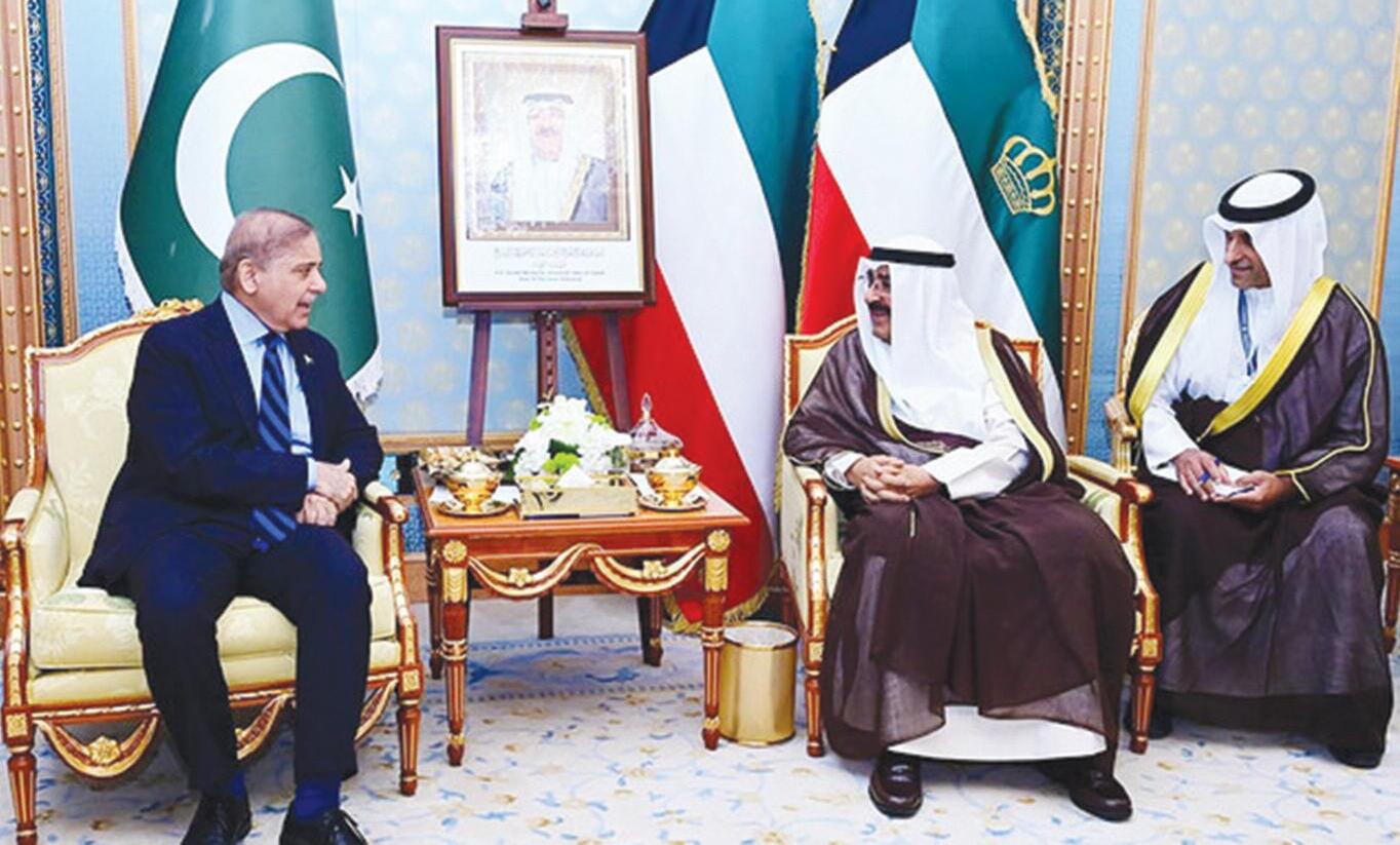 R I M E M I N I S T E R Muhammad Shehbaz Sharif Sunday called on the Amir of Kuwait, His Highness Sheikh Meshal Al-Ahmad AlJaber Al-Sabah on the sidelines of the World Economic Forum (WEF) Special Meeting in Riyadh and discussed with him issues of bilateral interest Premier Shehbaz Sharif thanked His Highness the Amir for sending him a warm congratulatory letter upon his re-election Congratulating His Highness Sheikh Meshal Al Ahmad Al-Jaber Al-Sabah on assuming the role of Amir the prime minister expressed his desire to work closely with His Highness to transform bilateral ties into a mutually beneficial economic partnership that would serve the best interests of the peoples of both countries Pakistan and Kuwait had signed a number of MoUs and agreements to deepen cooperation in trade and investment in November 2023 The PM assured the Kuwaiti leadership that these MoUs and agreements would be implemented in an efficient and timely manner In addition to bilateral ties the regional situation, particularly with regards to the crisis in Gaza, was also discussed The Prime Minister reiterated his invitation to the Amir of Kuwait to undertake an official visit to Pakistan at his earliest convenience