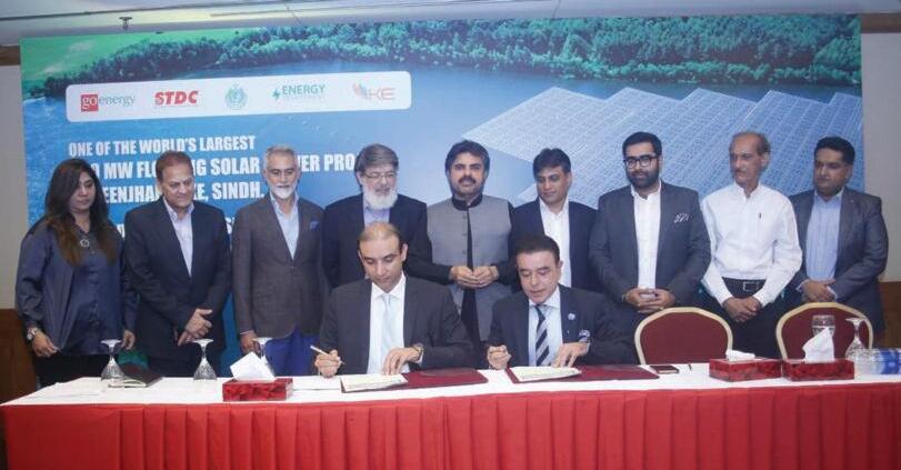 KARACHI: Sindh Provincial Energy Minister Syed Nasir Shah participated in the signing ceremony of the memorandum of understanding between the Department of Energy and Go Energy Pvt Limited for the 550 MW floating solar energy project on Kenjhar Lake Secretary Energy Mossadiq Ahmed Khan, CEO-STDC Salim Shaikh, CEO-Go Green Amar Ali Talat and Director K-Electric Haris Siddiqui were also present Syed Nasir Shah said that Go Energy Private Limited is making this project with the cooperation of STDC Sindh Energy Department and Sindh Irrigation Department STDC Kenjhar Lake Power Project will lay a 220 kv transmission line of about 60 km to K-Electric grid station Dhabiji Karachi Nasir Shah said that KElectric is the off-taker of the 500MW floating power project for which K-Electric has provided Letter of Intent (LOI) and Energy Department has also provided a Letter of Intent (LOI) He said that this project is environmentally friendly as it will help prevent water evaporation and will be beneficial for aquatic life He added that project will also benefit land conservation and this project is environment friendly which will promote