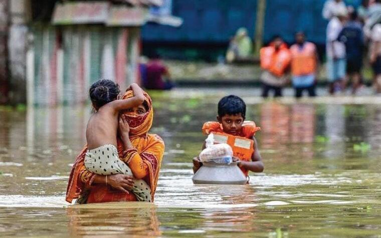 Nearly 300 000 Bangladeshis were taking refuge in emergency shelters Saturday from floods that inundated vast areas of the low-lying South Asian country, disaster officials said The floods were triggered by heavy monsoon rains and have killed at least 42 people in Bangladesh and India since the start of the week many in landslides My house is completely inundated, Lufton Nahar, 60, told AFP from a relief shelter in Feni, one of the worst-hit districts near the border with India’s Tripura state Water is flowing above our roof My brother brought us here by boat If he hadn t, we would have died The nation of 170 million people is crisscrossed by hundreds of rivers and has seen frequent floods in recent decades Monsoon rains cause widespread destruction every year but climate change is shifting weather patterns and increasing the number of extreme weather events Highways and rail lines were damaged between the capital Dhaka and the main port city of Chittagong making access to badly flooded districts difficult and disrupting business activity