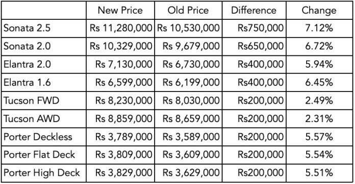 The new prices for Hyundai s portfolio are as follows:
