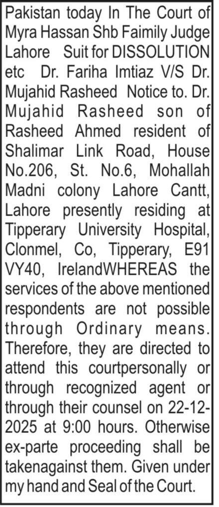 adding that Pakistan cannot interfere in the American judicial system The court however, emphasized the need for the federal government to provide a detailed update on all measures taken concerning her welfare and any potential repatriation A larger bench of the IHC, headed by Justice Arbab Muhammad Tahir and comprising Justices Khadim Hussain Soomro Muhammad Azam Khan, and Khanaam Ameen Minhas, heard the petition filed by Fauzia Siddiqui Imran Shafiq, Advocate representing the petitioner appeared along with the Additional Attorney General on behalf of the federation Advocate Imran Shafiq stated that the petition primarily concerns Dr Aafia s repatriation Justice Tahir observed that the original petition did not specifically request repatriation and highlighted that an extradition agreement exists between Pakistan and the United States The bench questioned why previous court directives were not fully complied with noting that contempt of court notices had been issued The Additional Attorney General explained that the federal government has challenged prior IHC decisions in the Supreme Court though the case has not yet been scheduled He reiterated that medical facilities are available in the US prison but a doctor chosen by the petitioner cannot be appointed and that the federal government has provided other facilities, including processing visas He stressed Pakistan’s inability to interfere in internal judicial matters of the United States, given Dr Aafia s American citizenship and conviction abroad Justice Tahir remarked on the prolonged delays caused by procedural hurdles stressing the urgency of resolving the petition and the limited time of the four-judge bench to sit daily The court directed the federal government to submit a full briefing detailing all steps taken including engagement with US authorities regarding medical care and repatriation procedures The IHC subsequently adjourned the hearing of Dr Aafia Siddiqui s case until January 20, awaiting the comprehensive update from the federal government