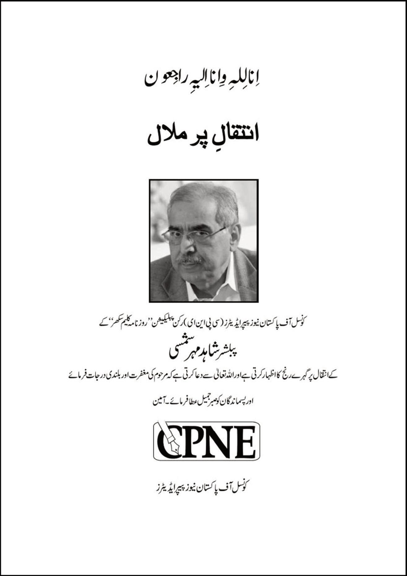 Dedicated to the legac y of late Hameed Nizami Arif Nizami (Late) Founding Editor