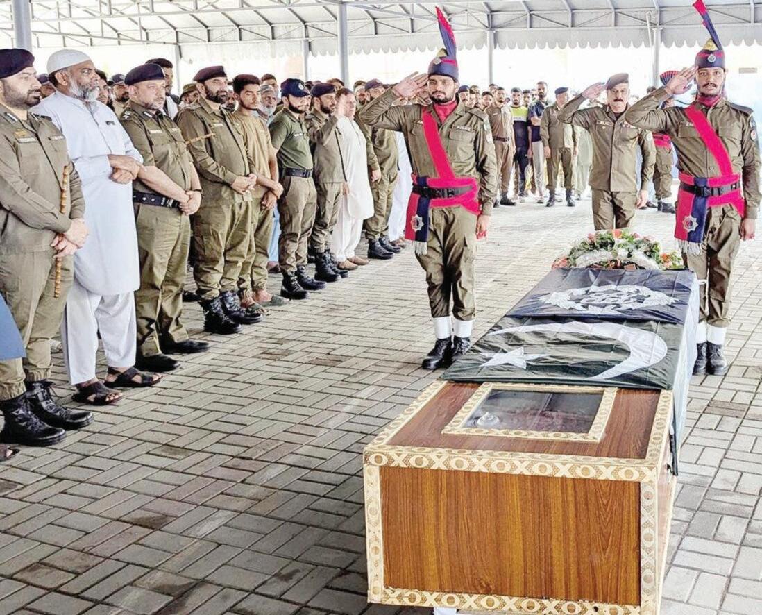 The funeral for Lahore Police s martyred Constable Ammar Aqib Ali was offered at Qila Gujjar Singh Police Lines on Friday Constable Ammar Aqib Ali was posted at the Investigation Wing of the Factory Area Police Station The constable sustained severe injuries from high-voltage electric wires during a raid when the suspect Asif resisted arrest Despite receiving treatment at the burn unit of Jinnah Hospital he succumbed to his injuries