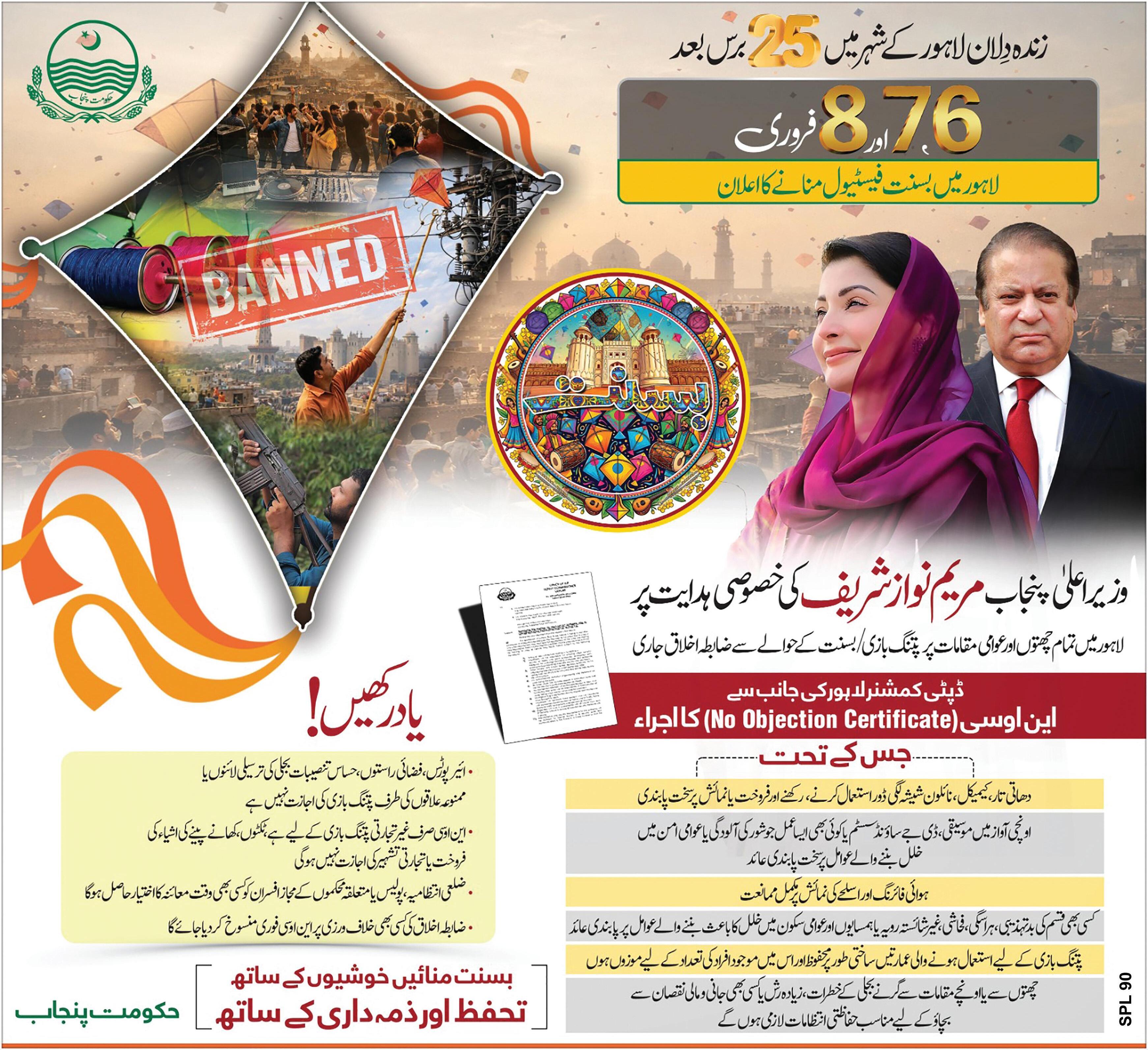 The Lahore administration has announced a comprehensive code of conduct for the three-day Basant festival scheduled to be held from February 6 to 8 aiming to ensure public safety and enforce regulations set by the Punjab government