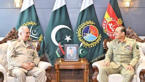 Chief of Defence Staff (CDF) and Chief of Army Staff Field Marshal Asim Munir on Monday reaffirmed Pakistan’s commitment to strengthening bilateral relations with Libya the military’s media wing said According to a statement issued by the Inter-Services Public Relations (ISPR), Libyan Arab Armed Forces Commander-inChief Field Marshal Khalifa Abual-Qasim Haftar accompanied by Deputy Commander-in-Chief