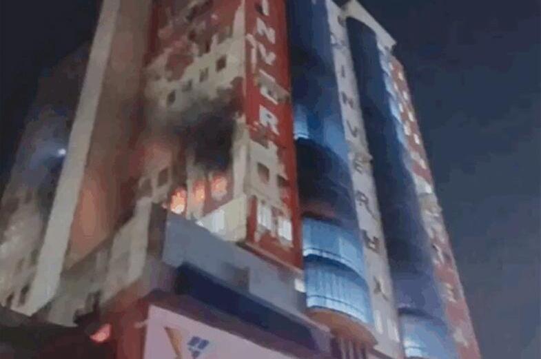 The blaze started around 7:45pm on the seventhfloor parking area of the Al Najeeb mobile market a high-rise building South Deputy Inspector General Syed Asad Raza said Three vehicles were damaged, and cooling operations continued after the flames were contained Rescue 1122 reported that two people were safely