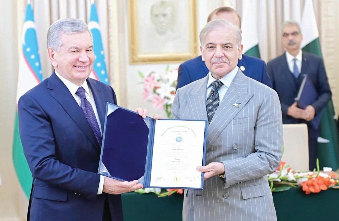 Anti-narcotics cooperation: Agreement to combat illicit trafficking of narcotic drugs and psychotropic substances Digital cooperation: MoU between Pakistan s IT Ministry and Uzbekistan s Ministry of Digital Technologies to promote innovation, digital infrastructure, and technology exchange Maritime and port cooperation: MoU to enhance trade at Karachi, Gwadar and Qasim ports Industrial and SME collaboration: Agreements to strengthen small and medium enterprises and industrial ties Academic and research collaboration: MoUs between University of Peshawar and Tashkent State University of Oriental Studies and between strategic and regional studies institutes Municipal and business cooperation: Partnerships between Peshawar and Termez, Islamabad and Samarkand; establishment of a Uzbekistan–Pakistan Joint Business Council At the ceremony President Mirziyoyev was conferred an honorary Doctorate of Philosophy and the title of professor for his exceptional contributions towards fostering strong bilateral ties between Pakistan and Uzbekistan and promoting regional peace and development ” ‘DEEP-ROOTED RELATIONS’