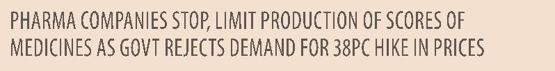 P H A R M A CO M PA N I E S S TO P, L I M I T P R O D U C T I O N O F S CO R E S O F M E D I C I N E S A S G O V T R E J E C T S D E M A N D F O R 38 P C H I K E I N P R I C E S