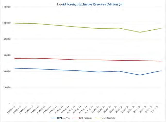 The fact that the State Bank has been buying from the banks periodically, can be seen in the graph below, indicating marginally lower bank reserves for every consequent week. Currently, it is believed the State Bank has negative real reserves, with short-term obligations exceeding its available funds. To prioritize stability, it is crucial for the SBP to build reserves whenever an opportunity arises.