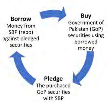 The strategy is straightforward: the bank borrows from the SBP using government securities as collateral to finance additional purchases of government securities. These securities, in turn, serve as collateral to borrow