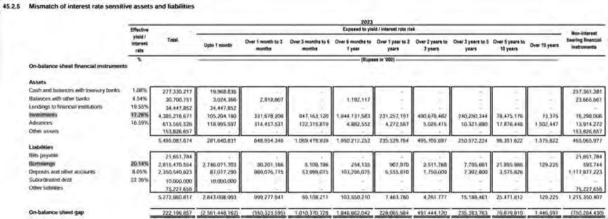As per Saad Hanif, deputy head of research at Ismail Iqbal Securities, “If the bank’s investments are predominantly interest rate-sensitive while its borrowings are not adequately matched to these assets, it could face challenges in managing interest rate risk. For example, if interest rates decrease, the value of the bank’s fixed-income investments may decline, leading to potential losses or impairments. It suggests that the bank may face challenges related to interest rate risk management, which could impact its financial performance and capital adequacy.”
