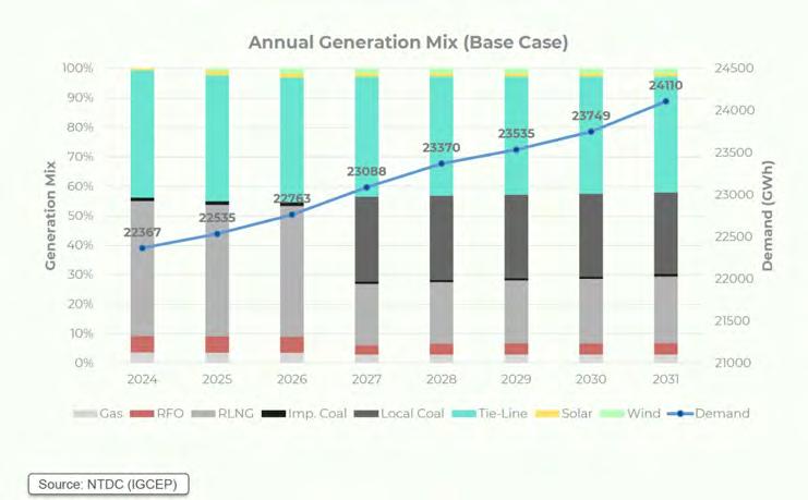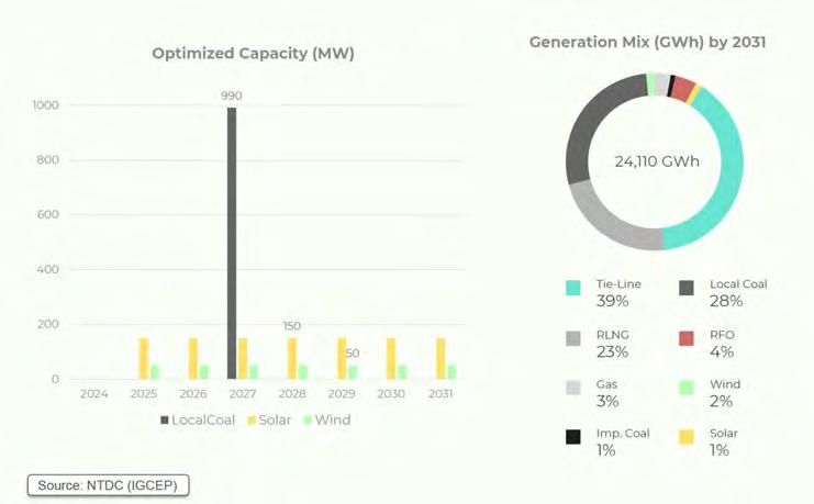 Moreover, there’s a significant increase in the share of affordable electricity imported from the NTDC system, reaching 64% of total generation by 2031, minimising the need for new local coal plants.