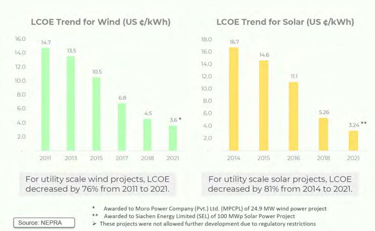 In the past decade, there has been a significant decline in the global Levelized Cost of Energy (LCOE) for utility-scale wind and solar projects, a trend mirrored in Pakistan with substantial cost reductions in renewable